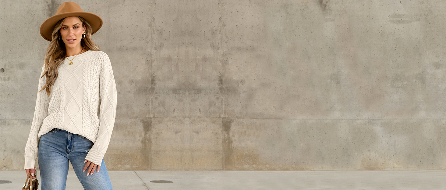 ANRABESS Sweaters for Women Oversized Cable Knit Fall Long Sleeve Crewneck Casual Pullover Sweater Tops 2025 Winter Outfits